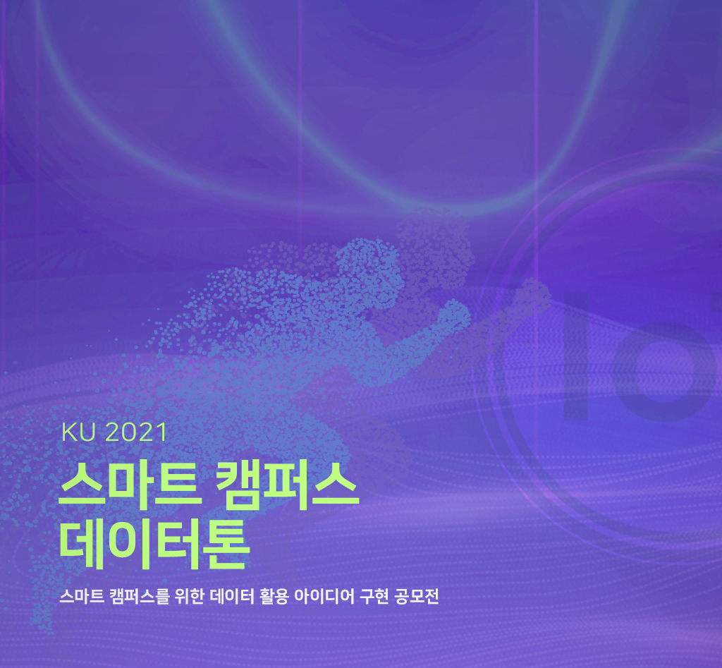 어느덧 2021년 신축년(辛丑年)이 반환점을 향해 나아가고 있습니다. 2021년 새해에 다짐했던 일들은 계획대로 진행중이신가요? 6월은 지금까지 쉼없이 달려온 스스로를 토닥이며 앞으로 헤쳐 나갈 미래를 위해 새로운 다짐을 하게 되는 달이기도 합니다. 설사 계획대로 실천하지 못하셨더라도 괜찮습니다. 코로나19로 인해 제한된 환경 속에서 각자의 자리에서 최선을 다하고 계시는 여러분들께 응원과 격려의 박수를 보냅니다. 디지털정보처도 지난해에 이어 제2회를 맞이하는 'KU 2021 스마트 캠퍼스 데이터톤'을 시작으로 새로운 변화를 가져가고자 합니다. KU 2021 스마트 캠퍼스 데이터톤의 '데이터톤'은 데이터(Data)와 마라톤(Marathon)의 합성어입니다. 데이터톤은 학생 중심의 지속가능한 스마트 캠퍼스 구축이라는 목표를 갖고 진행되는 공모전이며, 고려대학교 서울캠퍼스 학부/대학원생은 누구나 참여해서 교내외 데이터를 활영하여 독창적인 아이디어를 제안하고 이를 구현해볼 수 있습니다. 6월 10일까지 'KU 2021 스마트 캠퍼스 데이터톤' 참가팀 모집이 진행되니, 데이터와 함께 마라톤을 시작하실 분들은 신청해주세요:)